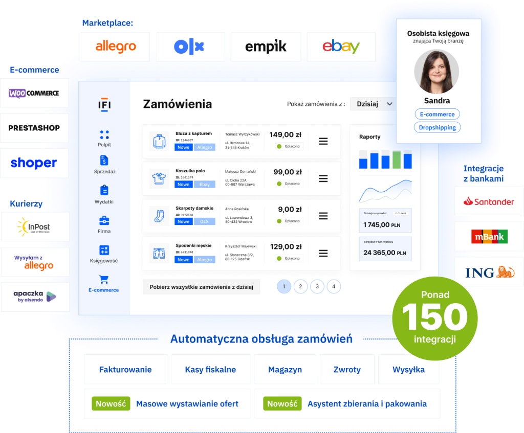 Zarządzaj sprzedażą z różnych sklepów i marketplace w jednym systemie
